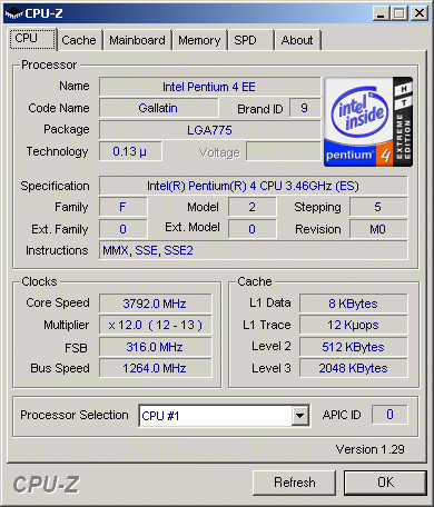 | Процессор | Процессор Intel Pentium4 660 на ядре Prescott 2M (тактовая частота 3.6Ггерц, 200х18). |