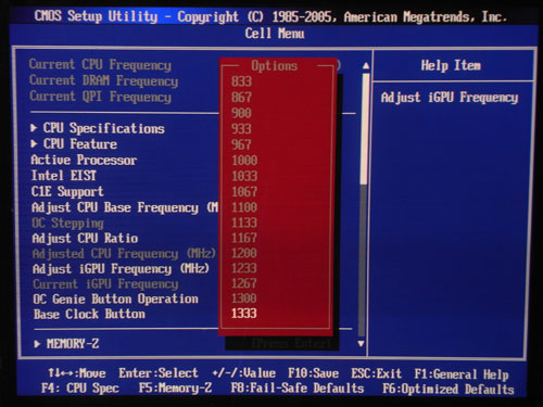 Также отметим, что пользователь может повысить частоту графического ядра с помощью соответствующей функции в BIOS:
