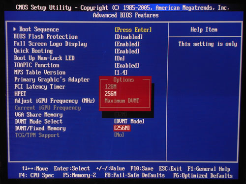 И, наконец, отметим возможность регулировать объем памяти выделяемый на нужды встроенной графики: