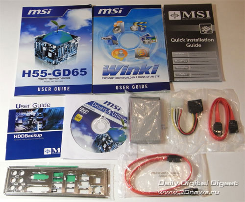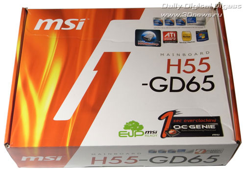 Коробка с MSI H55-GD65 имеет следующий вид: