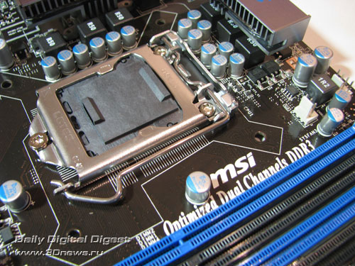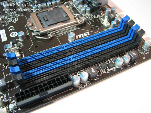 Как мы уже говорили, на плате MSI H55-GD65 установлено два слота PCI Express Graphics. Впрочем, это никак не повлияет на работу сборщика, поскольку между первым PEG слотом и слотами памяти имеется достаточное расстояние.