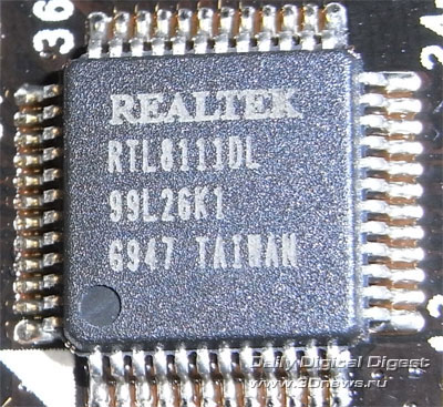 Также на плате установлен высокоскоростной сетевой контроллер Realtek RTL8111DL (Gigabit Ethernet) подключенный к шине PCI Express (x1).