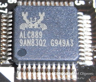 Плата MSI H55-GD65 имеет восьмиканальный звук, а в качестве кодека используется чип ALC889.