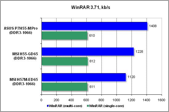 Сжатие данных (WinRAR) измерялось в Кб/с., т.е. больше - это лучше.