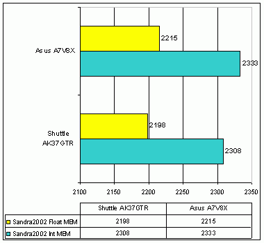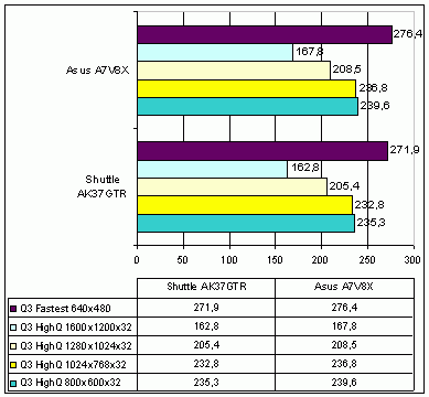 ПроизводительностьСравнение производительности я производил с единственной (пока :) протестированной платой на чипсете KT400 - Asus A7V8X. В тестовой системе было использовано следующее оборудование: