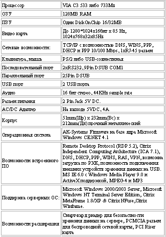 Как ни крути, а законы западного цивилизованного рынка в области IT инженерии потихонечку расползаются и по нашей стране. К примеру, сегодня вы уже вряд ли встретите крупное солидное предприятие, пользующееся нелицензионным софтом - если не накажут свои, то, по крайней мере, дорога на запад для продукции этой компании будет закрыта. Кроме софта для продуктивной работы солидной фирме требуется четко отлаженная компьютерная сеть, а безглючности здесь можно добиться лишь грамотной структуризацией и толковыми админами. Все это стоит денег и немалых, особенно софт. Зачастую конторы просто не задумываясь, покупают своим сотрудникам полноценные компьютеры, а уж только потом понимают, к каким финансовым тратам это их привело. Но западный потребитель давно уже знает, что если на фирме часть сотрудников в основном работают, ну скажем, в офисных приложения, не требующих значительных ресурсов, то незачем ему ставить четвертый пень, да и даже Celeron-чик старый ему ни к чему (ведь софт-то все равно покупать придется). В этом случае западный руководитель компании покупает таким сотрудникам тонкого клиента. В России этот клиент пока что не получил широкого распространения, отчасти, возможно, из-за элементарного незнания - "Шо за клиент такой, да еще и тонкий?". AK Windows терминал GPИтак, что же это за терминал такой… Маленький компактный светло-серый девайс, действительно похожий на компьютер, по сути им не является - это сетевое устройство. Основной его конек в том, что он не имеет ни одной движущейся механической части, а потому у него отсутствует шум и, в принципе, физический износ, если не вдаваться в подробности старения электронных компонентов. Так вот, вы подключаете это устройство к сети, к нему подключаете монитор, клаву, мышь (при желании принтер, сканер и все остальное, что вешается на USB, COM и LPT порты) и работаете с сервера, на котором и установлена единственная операционка и весь нужный комплекс ПО. Система эффективна как для малого, так и для крупного бизнеса. Просто в зависимости от количества компьютеров в вашей локальной сети, структуры построения и решаемых задач, вам может понадобиться не один сервер, а скажем несколько, объединенных в кластер. Плюсы такого подхода очевидны: колоссальная экономия средств на лицензионном ПО и на новых компьютерах (хотя зачастую стоимость тонких клиентов практически равна стоимости системного блока); значительное упрощение структуры сети, сетевых настроек и т.п., а значит уходят глюки, простои, ругательства в адрес взмыленного админа, носящегося с выпученными глазами по этажам; ну и возможность оперативно развертывать новые рабочие места, ведь установка тонкого клиента не требует возни с ПО, системой и т.п. нудными вещами. Итак, взглянем на нашего подопытного немного поподробнее… Спецификация![]() Внешний видНа вид клиент наш действительно тонкий. Это я к тому, что еще не так давно тонкие клиенты были совсем не тонкими, но прогресс на месте не стоит. Сам корпус металлический и на ощупь очень прочный. ![]() Для установки его вы можете выбрать один из двух вариантов - горизонтальная установка на приклеиваемые резиновые ножки, ![]() либо вертикальная установка на хитроспроектированные лапы с мягкими вставками. ![]() ![]() На передней панели клиента в самом верху (при вертикальной установке) расположена кнопка Power со св