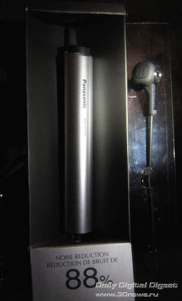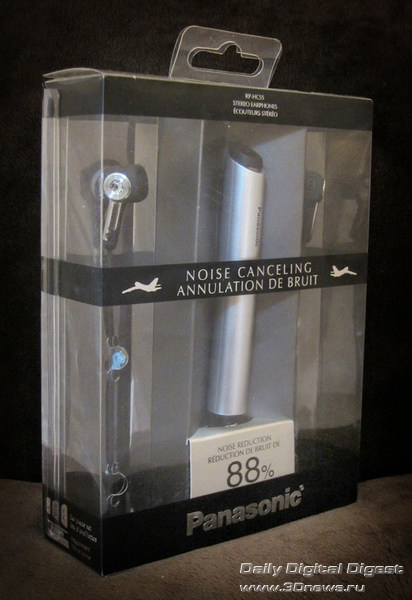 Ощущение при включении системы активного шумоподавления довольно необычное. Сначала раздается небольшой, едва слышный хлопок, а затем появляется чувство, будто кто-то выключил какой-то очень шумный прибор — кондиционер, вентилятор и т.д. Но при этом «гробовой» тишины не наблюдается, более того — слышно тихое шипение электронного блока RP-HC55. Общему прослушиванию музыки это не мешает, тем более, что устраняется окружающий шум, который гораздо заметнее. Судя по надписи на коробке, система шумоподавления глушит до 88% шумов, что составляет звукоизоляцию 18 дБ на частоте 200 Гц. Оценить работу системы можно даже не слушая музыку, — достаточно вставить наушники в уши и включить кнопку на пульте.