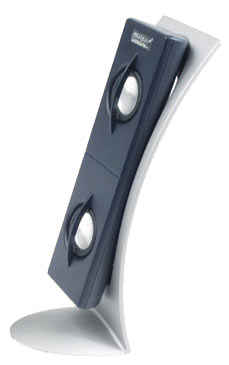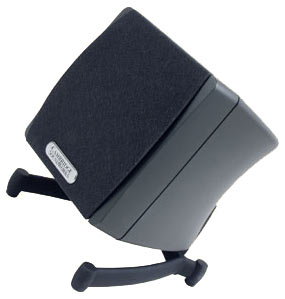 Компания Labtec уже больше года входит в состав Logitech. Благодаря этому торговая марка стала продвигаться и на игровой рынок, в результате возникла Arena 530. Дизайн колонок довольно оригинален. Как видите, они представляют собой небольшие сферы цвета серый металлик, закрепленные на округлой подставке. Мощность сателлитов очень низка – 4 Вт, сабвуфер – 15 Вт. Labtec не сильно улучшила свои позиции в области подключения. Здесь используется сложная система кабелей, так что вам придется попотеть при установке.