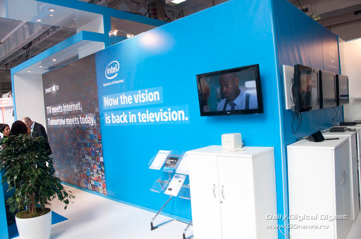 Спросите, а что делала на этом мероприятии Microsoft? Не поверите, но продвигала свою операционную систему для приставок на Intel Atom, а именно Windows Embedded 7 Consumer Edition. Интерфейс до боли напоминает тот, что используется в Windows Phone 7 и, судя по всему, обоснуется в Windows 8.