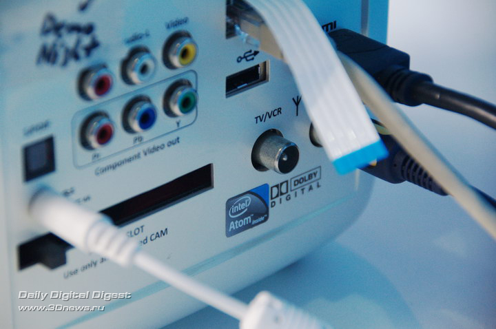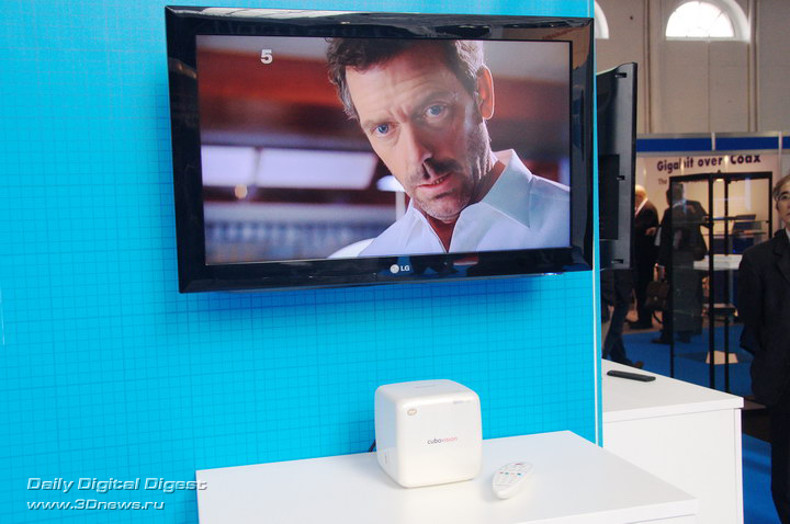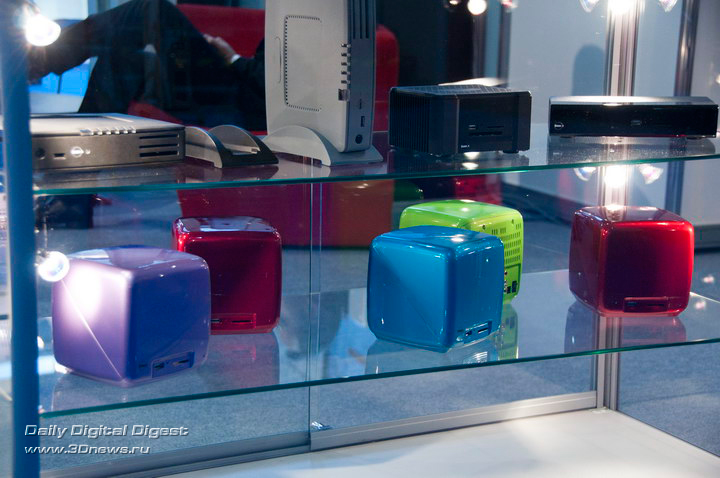 Первое, что удивило прямо с порога, — обилие разнообразных телеприставок на платформе Intel Atom. О том, что таковые планируются, я давно читаю в англоязычных презентациях, плюс во время прошлогодней поездки в Нижний Новгород нам показывали один очень предварительный прототип. А тут вдруг сразу добрый десяток моделей, причем большинство из них уже доступны конечным пользователям. Например, симпатичный кубик Cubovision распространяется по подписке Telecom Italia и может принимать не только цифровые каналы с разрешением до FullHD включительно, но и аналоговые.