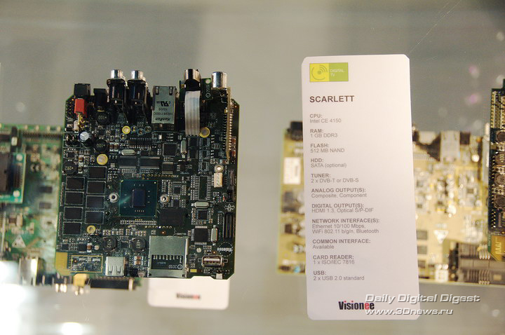 Судя по всему, такой момент наступил. Кроме итальянского Cubovision на IP&TV World Forum 2011 были замечены готовые продукты D-Link, Amino, Cocom и еще нескольких компаний, а на стенде Visionee предлагали конструктор из референсной платы с романтическим названием Scarlett (процессор на 100 мегагерц быстрее, чем у Cubovision) и корпуса по вкусу.