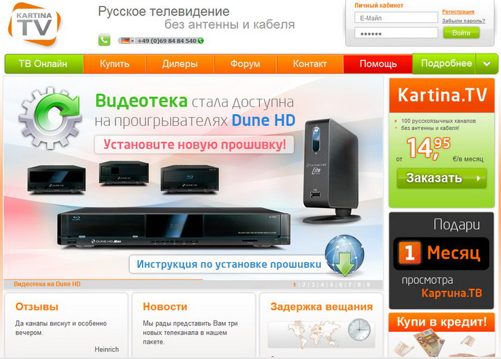 Kartina TV — международный проект, предоставляющий возможность смотреть телевидение на родном языке в любой стране мира. Заметим, не только на русском