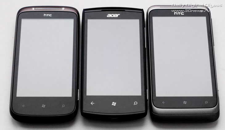 Слева направо: HTC Mozart, Acer Allegro и HTC Radar