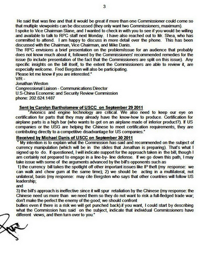 Датируемые промежутком с апреля по октябрь 2011 года, почти все письма этого массива относятся к работе государственной комиссии США под названием USCC или US-China Economic and Security Review Commission (можно перевести как «Комиссия надзора за американо-китайскими отношениями в области экономики и безопасности»). Поскольку очень многие из этих писем адресованы Биллу Рейншу (Bill Reinsch) — одному из членов USCC, логично предполагать, что почтовый ящик именно этого деятеля и был кем-то взломан.