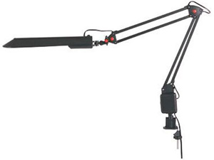 Лампа с дросселем (он рядом со струбциной) имеет отличную светоотдачу (900 лм на 11 Вт), но высокие пульсации вредны для зрения и нервной системы. Работать под ней дольше 30 мин в день не рекомендуется