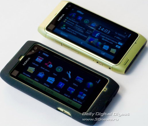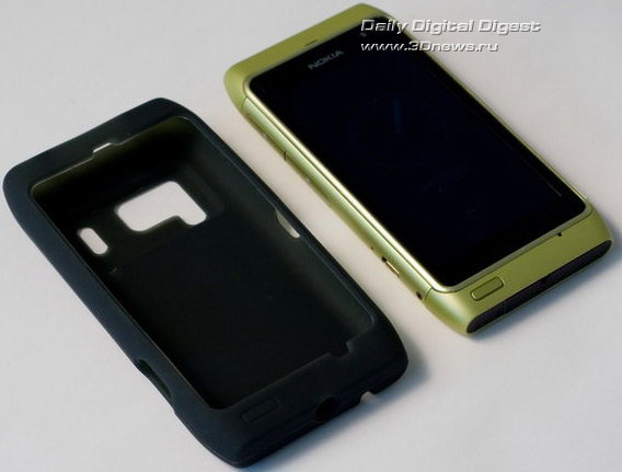 Чуть не забыл: российская (и только российская!) комплектация Nokia N8 будет включать резиновый чехол черного цвета. Он надежно защищает аппарат от царапин и падений с умеренной высоты, и при этом практически не портит его внешность. Напротив, многие даже сочтут, что в чехле N8 выглядит брутальнее.