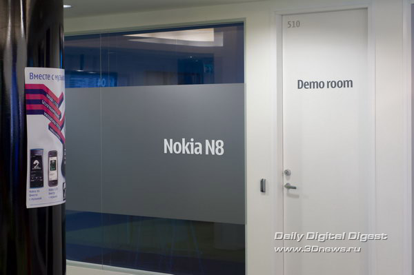 Мини-тест получился очень необычным, потому что проходил он в российском представительстве Nokia и в присутствии менеджера по продукции Евгения Лукьянчикова, который, с одной стороны, много рассказывал о N8, а с другой внимательно следил, чтобы мы не узнали чего лишнего. То есть никаких тестов производительности, времени автономной работы и, тем более, путешествий во внутренности смартфона. Только официальная презентация, умеренно-уклончивые ответы на дополнительные вопросы и фотосессия с рекомендованных ракурсов. Скучно? Ничуть не бывало! Ведь очень часто по недосказанным вещам можно узнать гораздо больше, и это как раз тот случай.