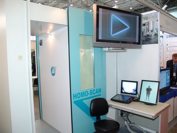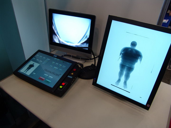 Установка просвечивает человека рентгеном, время сканирования — 5 секунд, доза облучения 0,35 микрозиверт. При этом видно, что снимок, сделанный на Homo-scan, размыт, нечеток: сложно рассмотреть кости и позвоночник. Наверное, пластик и наркотики, спрятанные в естественных полостях тела, будут незаметны вообще.