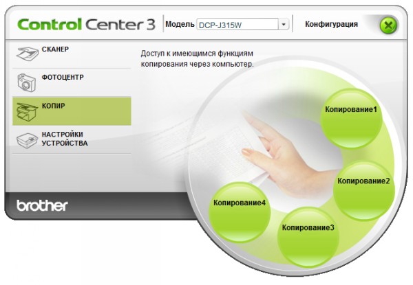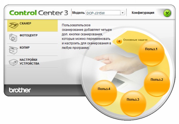 ⇡#Color Center 3Помимо сканирования по TWAIN- или WIA-протоколу, возможно сканирование при помощи утилиты Control Center 3, которая имеет четыре предварительные настройки (OCR, изображение, e-mail, в файл). Тут дублируются те же функции, что и при работе с панелью управления устройства, но каждый отдельный режим можно настроить под конкретную ситуацию. Задать можно не только разрешение и режим цветности, но и размер носителя, яркость, контраст, а также программу, в которой будет открываться и обрабатываться изображение. Помимо предустановленных настроек, предусмотрено четыре пользовательских пресета. Control Center 3 облегчает работу не только при сканировании, но и в режиме копирования, а также при работе с картой памяти. В режиме копира доступно четыре установки, каждая из которых настраиваемая, причём можно изменить настройки разрешения, цветности и размера носителя. Настройки масштабирования тут более скромные, чем при работе с панели управления устройства. Фактически доступно всего два варианта — 100%, а также подгонка по странице. В режиме фотоцентра и вовсе можно лишь либо просмотреть содержимое карты памяти, либо скопировать его, причём можно указать форматы файлов, которые необходимо копировать. ![]() Режим работы со сканером ![]() ![]() Настройки сканирования ![]() Режим работы с копиром ![]() Настройки копирования Также стоит отметить бесплатную 12-месячную подписку на антивирус Trend Micro Titanium Antivirus+ 2012, стоимость которой на российском сайте Trend Micro составляет 999 рублей в год, или порядка 30 долларов США. В общем, приятный бонус. ⇡#СтоимостьСредняя стоимость устройства в рознице составляет 4 690 рублей, что для МФУ такого класса весьма неплохо. Набор, состоящий из четырех картриджей, потянет из кармана порядка 1 600. По 320-340 рублей придётся отдать за цветные картриджи с ресурсом 260 страниц и около 600 — за чёрный картридж с ресурсом 300 страниц. ⇡#ЗаключениеИз плюсов Brother DCP-J315W стоит отметить быстрый встроенный сканер, скорость которого сослужит добрую службу и при копировании. Однако при всём этом скорость печати текста в нормальном режиме качества невысока, а печать фото в максимальном режиме качества и вовсе медлительна. Тут МФУ Brother обходит разве что модели EPSON, в то время как конкуренты от HP и Canon далеко впереди. Нельзя забывать и о низком уровне шума при печати. При сканировании принтер шумнее конкурентов, однако и существенно быстрее. Установка картриджей в отдельный отсек — еще один важный плюс, в бюджетных устройствах такое почти не встретишь. И конечно же, стоит отметить довольно живучую печатающую головку, что, впрочем, касается не только тестируемого устройства, но и всех струйных печатающих устройств Brother. Из недостатков, не касающихся непосредственно устройства, стоит отметить не шибко широкую сервисную сеть, но зато расходные материалы для принтеров и МФУ Brother имеются в любом специализированном магазине. В общем, если нет спешки при печати с высоким качеством, то МФУ J315W является отличным выбором для домашнего использования. Оно здорово впишется в любой интерьер и при этом не будет страдать от отпечатков, как тысячи других глянцевых устройств. Благодарим российское представительство компании Brother и компанию «МУК» за предоставленное на тестирование оборудование. А также компанию «Графитек» за предоставленный комплект колориметров Spyder3Studio.