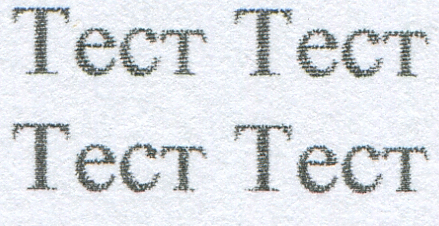 Скоростные показатели Для проверки скорострельности было распечатано 10 листов текстового шаблона, полностью заполненного словом «Тест» (шрифт — Times New Roman, кегль — 12, межстрочный интервал — стандартный). В черновом режиме печати при полном заполнении страницы словом «Тест» среднее время печати страницы без учёта времени подготовки к печати составило 4,4 секунды. При частичном заполнении в 20, 15 и 10 строчек среднее время печати одной страницы составило 1,8, 1,7 и 1,5 секунды соответственно, что является весьма неплохим результатом. А вот дальше нужно сделать небольшую оговорку: в настройках доступно два режима нормального качества («нормальное быстрое» и просто «нормальное»), но для чистоты эксперимента и возможности сравнения с другими устройствами было выбрано качество «нормальное». При печати того же шаблона с полным заполнением в среднем одна страница отпечатывается за 20,4 секунды, а при частичном заполнении (20, 15 и 10 строчек) требуется 10, 8,8 и 7 секунд на страницу, что уже довольно медленно. Ниже приведены кроп-фрагменты печати текста в режимах «быстрое», «нормальное быстрое» и «нормальное» на обычной офисной бумаге плотностью 80 мг/м2. Как видно на приведённых фрагментах, черновой режим хоть и шустрый, но качество годится действительно только для черновиков. ![]() Фрагмент страницы, отпечатано в режиме качества «быстрое» ![]() Фрагмент страницы, отпечатано в режиме качества «нормальное быстрое» ![]() Фрагмент страницы, отпечатано в режиме качества «нормальное» Замер скорости фотопечати осуществлялся в режиме качества «самое высокое». Замеры проводились при использовании носителей формата A4 и 10х15 см с активированным режимом печати без полей, который немного замедляет процесс печати. На карточку 10х15 см было затрачено 180 секунд, а формат А4 был отпечатан за 350 секунд. Ме-длен-но. Шум и вибрация Благодаря отсутствию тяжёлой каретки с картриджами вибрация и раскачка корпуса при печати у тестируемого устройства значительно меньше, чем у конкурентов. Самый шумный процесс — выброс листов, тут уровень шума достигает 63,2 дБА. Процесс подготовки к печати сравнительно тихий — до 41,2 дБА. Шум захвата листа при печати на максимально возможной скорости не превышает 52,2 дБА. В общем, не громко. Непосредственно в процессе печати текста в режиме качества «быстрое» уровень шума составляет 51,1-53,3 дБА, а в режиме качества «нормальное» — 45,2-47,1 дБА. При фотопечати на носителе формата А4 уровень шума колеблется в пределах 38,8-41,8 дБА, а при использовании карточки 10х15 см — 41,2-43,0 дБА. Измерения проводились на расстоянии 50 см от геометрического центра лицевой панели ⇡#КопированиеФункция копирования — одна из важных для МФУ. Разумеется, есть эта функция и в тестируемом устройстве, но каких-то интересных особенностей у модели J315W в этом плане нет. В настройках доступен выбор одного из трёх режимов качества. Имеются довольно-таки развёрнутые настройки масштабирования, ведь тут масса вариантов преобразований форматов, подгон по размеру страницы, а также ручное указание от 25% до 400%, причём ввод осуществляется при помощи виртуальной цифровой клавиатуры, а не путём пролистывания значений, как у всех конкурирующих устройств. Выбор типа бумаги такой же, как и в режиме автономной печати. А вот выбор размера носителя немного отличается — помимо A4, 10x15, 13x18 и Letter, здесь пре