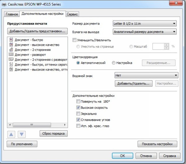 ⇡#Дополнительные возможностиУстройство поддерживает технологию печати Apple AirPrint, а также набирающую обороты (несмотря на статус бета-тестирования) службу Google «Виртуальный принтер». Настройка виртуального принтера требует предварительной регистрации устройства в системе Epson Connect, которая позволяет печатать данные из облака и загружать в него отсканированные материалы, печатать с мобильных устройств в сети либо же отправлять задания на печать через Интернет. ⇡#СтоимостьРекомендуемая стоимость EPSON WorkForce Pro WP-4515DN составляет 12 300 рублей. Струйное устройство печати чаще всего ассоциируется с существенными затратами на картриджи… но не в случае тестируемого устройства. Производитель заявляет, что печать обходится вдвое дешевле, чем на лазерных принтерах. Тут, правда, не обошлось без небольшого уточнения — данное утверждение верно, но только для лазерных цветных МФУ стоимостью менее 699 долларов США. Картриджи для устройства делятся на три категории: стандартной, повышенной и максимальной ёмкости. В случае чёрного цвета стоимость составляет 956, 1 246 и 1 777 рублей, цветных — 658, 1140 и 1890 рублей. Точные данные по ресурсу картриджей базовой ёмкости обнаружить не удалось. Чёрных картриджей повышенной и максимальной ёмкости хватит на 2 400 и 3 400 страниц, а цветных — на 1 200 и 2 400 страниц соответственно. То есть печать обходится даже дешевле, чем в случае рассмотренного нами ранее принтера Epson B-300. Но не стоит забывать, что B-300 ощутимо быстрее, да и разрешение печати у него выше, хотя минимальный размер капли составляет всё те же 3 пл. ⇡#ЗаключениеEPSON WorkForce Pro WP-4515DN — довольно крупное, слегка шумноватое устройство, с не слишком высоким качеством фотопечати. Оно не может похвастаться богатством настроек режима копира, есть проблема с подключением в 64-битных ОС семейства Windows, не предусмотрена печать с USB-носителей. Но есть и масса плюсов — высокая скорость, а также возможность автоматической двусторонней печати, поддержка Google CloudPrint и AirPrint, отдельный лоток для фотоносителей и конвертов плюс возможность подключения дополнительного лотка большой ёмкости, предназначенного для обычной бумаги. Нельзя не отметить и такие функции, как сканирование изображений в сетевую (SMB/FTP) папку либо отправка отсканированного изображения на e-mail-адрес, причём вручную выбирать и вводить папки или адреса не нужно. Но, конечно, самый важный плюс EPSON WorkForce Pro WP-4515DN — это сравнительно невысокая стоимость как самого устройства, так и печати, в особенности при использовании картриджей максимальной ёмкости. Благодарим украинское представительство компании Epson за предоставленное на тестирование оборудование. А также компанию Графитек г.Москва за предоставленный комплект колориметров Spyder3Studio.