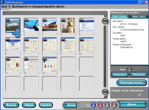 EPSON PhotoQuicker. Программа эта создана специально для тех, у кого нет времени разбираться с большими, но и более функциональными профессиональными пакетами типа Photoshop'a и ему подобных. У нее довольно простой и понятный интерфейс, так что разобраться с ней не составит никакого труда и не займет много времени. Те, у кого возникнут какие либо вопросы по работе с софтиной, смогут найти ответы на них в интерактивном руководстве пользователя (если нужна, вот ссылка на него: ) по работе с ПО принтера.