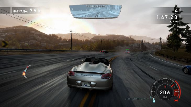 Так как NFS — игра достаточно динамичная, то первое, что было выяснено в процессе прохождения, — руль надо все же закреплять при помощи струбцин. Если попробовать их снять и оставить устройство на одних присосках, то есть риск на самом крутом повороте оторвать руль от стола и с тоской наблюдать красочный ролик о том, как ваш спорткар разлетается на тысячи маленьких спорткарчиков. Виброотдача в Hot Pursuit реализована лучше, чем в DiRT 2: чувствуется разница между заносом и ударом о встречный автомобиль — последний, естественно, куда более ощутим. Правда, если после столкновения вы быстренько нажмете клавишу Esc и захотите проехать трассу заново, посчитав эту попытку неудавшейся, руль будет бешено трястись до самого начала новой гонки. Этим же грешит и DiRT 2, но там вибрация слабее и не так мешает бродить по меню.