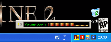 Подключается KP-202 к компьютеру через PS/2 интерфейс. Для полной функциональности необходимо установить драйверы с прилагаемого диска. При нажатии на любую из мультимедийных кнопок вы увидите на экране примерно следующее (в примере нажата кнопка "Volume Up"):