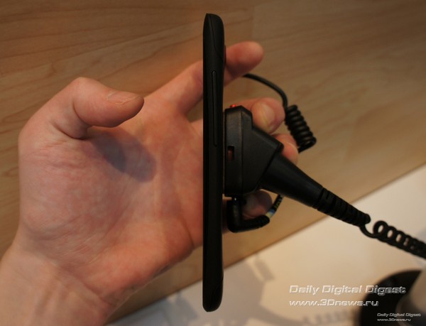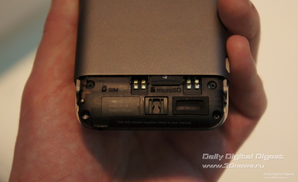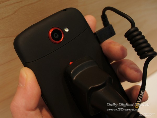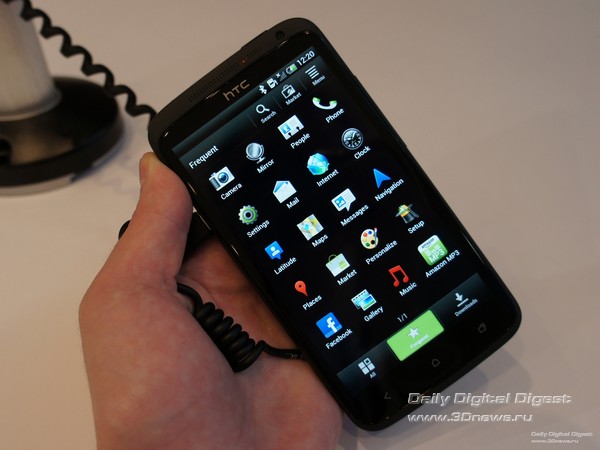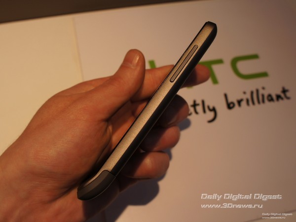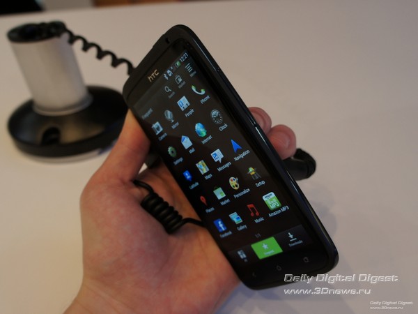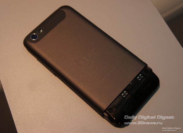 Корпус у смартфона монолитный и неразборный, батарею можно заменить только в сервисном центре (кажется, нашелся второй недостаток). Зато качество сборки даже у не совсем финальных образцов, показанных на MWC, выше всяких похвал: не гнется, не скрипит. Правда, флагман у HTC почему-то пластиковый. Нет, у той же Nokia – тоже пластиковый, но у финнов и остальные смартфоны поликарбонатные, а у HTC два аппарата помладше облачены в металл. На корпусе One X, кстати, видна пятерка контактов – использоваться они будут для подключения к док-станции. Вероятно, примерно так же, как у Rhyme, только там было три контакта вместо пяти – новый док, видимо, обещает стать более функциональным.