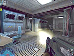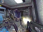 К этому же недостатку можно отнести и то, что несмотря на встречающиеся дыры в потолках и полах, прожженные кровью-кислотой Чужих, мы не можем добиться этого во время действия. Когда импульсная винтовка рвет очередную тварь на мелкие кусочки, кислота хлещет во все стороны. Но при этом на стенах и полу не остается никаких следов, хотя нас обжигает сильно - бронежилет и здоровье слетают моментально. Иногда тварь падает с простреленной черепушкой и кровь щедрой лужей растекается по полу из-под трупа (хм-м-м, прямо как в No One Lives Forever - предыдущей игре от Monolith Studios). Но пол спокойно выдерживает, даже не покоробившись. Наверное, Чужие решили больше не прожигать полы и разбавили кровушку водичкой, чтоб не сильно проедала.
