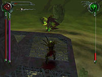 Фаза 2. Противник оказывается на редкость живуч. Вместо того чтобы спокойно лежать внизу или наслаждаться бесконечным полетом, он опять начинает выяснять отношения. Сражение теперь происходит на небольшой платформе. Блокируете серию ударов, уворачиваетесь от супер-удара ("держите боевой режим"+"в сторону" и нажимаете "прыжок") и т.д., пока не накопите достаточно "ярости"(rage bar) для "испепеления"(Immolate) противника. Далее тем же самым по тому же месту. После нескольких "испепелений" начинается финальный акт представления.Фаза 3. Наконец-то в руках у Кейна оказался Soul Reaver, этот легендарный клинок. Соответственно меняется и тактика боя. Блоки и увертки те же что и в фазе 2, но Immolate уже не актуален – Lord успевает телепортироваться до того, как его охватит огонь, так что применять придется Berserk.