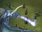 Тем не менее, легкость и безнаказанность рашей не столь примитивна, как кажется на первый взгляд. Да, DS - без сомнения, ActionRPG. Но Крис Тейлор в ней остался тем непревзойденным мастером стратегии реального времени, каким его узнал мир. О чем я? Разумеется, о тактическом интерфейсе. Он прост. Он гениален. Он вызывающе прост и гениален. Прежний фаворит "многоголовых Diablo", Icewind Dale, кажется после DS тяжелым и мрачным аттракционом по доведению игрока до белого каления. Скажу еще проще: вы не сможете придумать функции, не реализованной, так или иначе, в проекте Gas Powered Games. Формации? Полдюжины - устроит? Поведение членов команды в зависимости от скриптов? Двадцать семь комбинаций на брата - каково вам? Сверх этого, построения под любым углом, с любой степенью разряженностисжатости рядов (чем плотнее наши ряды, как говорится...) и в любой последовательности; "интеллектуальная" система взаимовыручки; система охраны одного персонажа другими; полная автономность каждого компанейца или работа строго в команде...