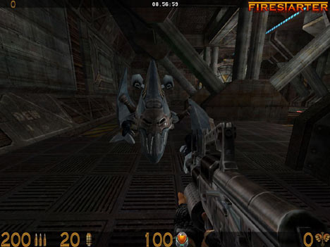 Слава Климов: Честно говоря, в первый раз слышу. Возможно, общими чертами будут исключительная напряженность гэйплея и огромное количество монстров. На этом, пожалуй, аналогии заканчиваются. Сэм, несомненно, замечательная игра, но в плане гэймплея он довольно ортодоксален. Времена клонов прошли, и сейчас, чтобы добиться успеха, не достаточно просто поменять антураж Древнего Египта на мегаполис. Если с чем-то и можно сравнивать FireStarter так это, опять же, с AVP. СОХРАНЕНИЙ НЕ БУДЕТ. То есть, конечно, вы можете выключить компьютер и начать на следующий день с того же уровня, где вы остановились. Но если не сложилось уцелеть за положенных 3 минуты - извольте начинать сначала.