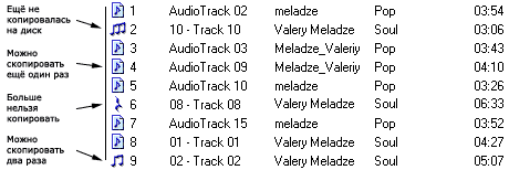 Но проблема заключается даже не в этом. Один из ключевых блюстителей авторских прав, Sony не могла не замаскировать в своём наборе ПО подводные камни. Только представьте, что вы, человек экономный, и по наивности, перенесли всю свою коллекцию в формат OpenMG. "Теперь станет возможным каждый день копировать на свой единственный различные композиции", считаете вы, и глубоко ошибаетесь. Sony ограничила этот процесс, разрешив копировать каждую композицию на диск всего по 3 раза. В зависимости от того, сколько раз песня копировалась на диск, изменяется её иконка: