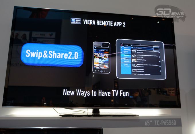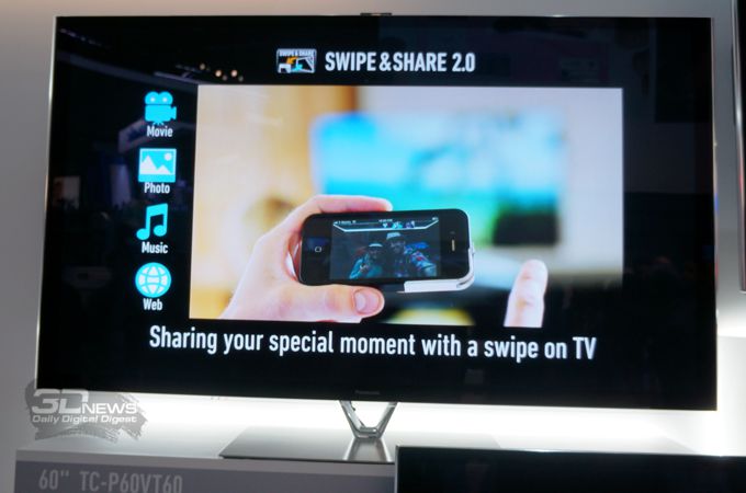 Благодаря функции Swipe&Share 2.0 пользователи могут передавать видеоролики, фотографии и веб-страницы с мобильных устройств на телевизор одним движением пальца и наоборот, а при помощи приложения VIERA Remote 2.0 можно превратить смартфон, работающий под управлением iOS или Android, в пульт дистанционного управления либо дополнительный экран.