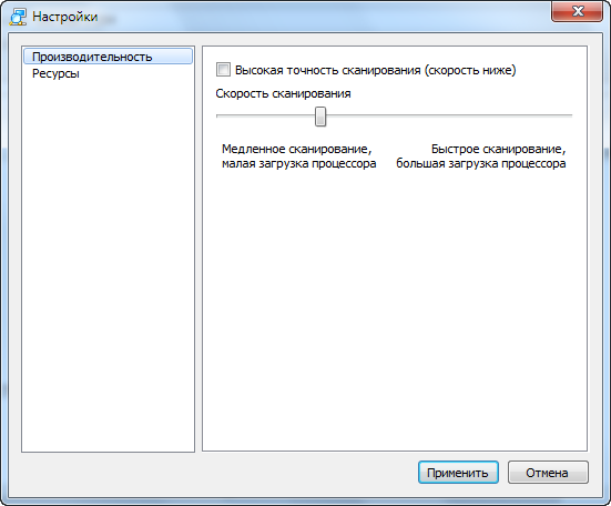 Главная проблема многих утилит для сканирования сети — очень медленная работа. При попытке обращения к сетевым ресурсам в результате большой загрузки процессора вывод отчета о найденных компьютерах замедляется. В Advanced IP Scanner данная проблема решена. В настройках приложения можно гибко управлять скоростью сканирования. С помощью специального ползунка можно найти «золотую середину», баланс между производительностью системы и загруженностью процессора. Кроме этого, утилита позволяет задействовать режим сканирования сетевых ресурсов, при котором точность определения имеющихся устройств выше, однако скорость процесса обработки информации заметно ниже.