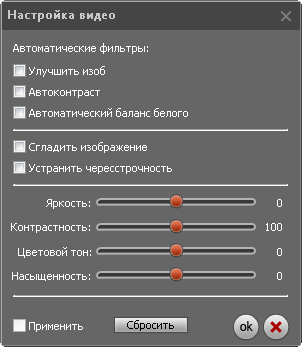 В некоторых случаях при конвертировании видео с помощью «Movavi Видео Конвертер» можно получить изображение, более приятное для глаз, нежели исходник. В настройках программы доступно несколько инструментов коррекции оригинального ролика. Так, с помощью утилиты можно, например, редактировать яркость картинки, контрастность, подобрать цветовой тон и задать насыщенность цветопередачи.
