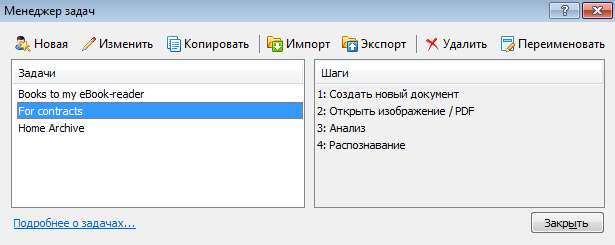 Акцентируя внимание на новшествах FineReader 11 Corporate Edition, прежде всего следует отметить расширенное стартовое окно «Задачи» и возможность создания пользователем собственных сценариев работы программы. Если в профессиональной редакции OCR-пакета список «однокликовых» операций строго регламентирован, то в корпоративной версии его можно всячески варьировать, гибко настраивая и автоматизируя работу FineReader. Важной особенностью приложения является возможность использования сценариев, созданных другими пользователями, и наличие в составе продукта планировщика Hot Folder, также подвергшегося дальнейшим улучшениям и доработкам.
