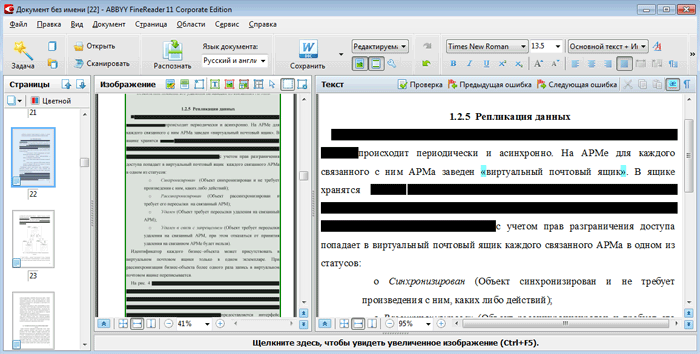 Следуя новым техническим и организационным веяниям в области информационной безопасности, разработчики ABBYY оснастили текстовый редактор программы средствами цензурирования документов. Основная функция новинки заключается в защите конфиденциальных данных от посторонних глаз: с помощью специального маркер, пользователь может замазать черными полосами секретный текст и сделать его недоступным для просмотра и копирования. Функция поддерживается при сохранении документа в PDF-файл, а также в других форматах.