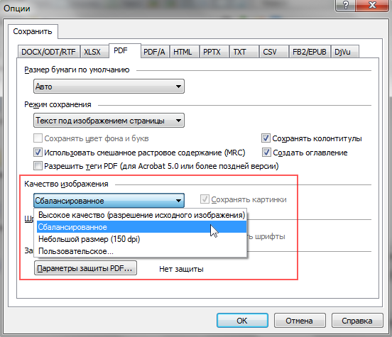 ABBYY FineReader предоставляет широкий спектр возможностей для работы с форматом PDF — принятым во всем мире стандартом обмена электронными документами и деловой переписки. В обновленной редакции продукта улучшена технология MRC-сжатия (Mixed Raster Content), благодаря чему можно уменьшить размеры PDF-файлов в пять раз, по сравнению с 10-й версией программы, без видимых изменений качества изображения — это позволяет экономить пространство на диске компьютера и пересылать объемные документы по электронной почте. Три новых режима сохранения PDF — «Высокое качество», «Небольшой размер», «Сбалансированный режим» — позволяют пользователю получать оптимальные результаты для разного типа задач.