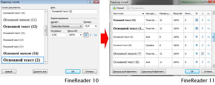 Брызги нововведений затронули также инструментарий для проверки неуверенно распознанных и отсутствующих в словарной базе слов, редактор стилей с функцией объединения стилей со схожими атрибутами и диалоговое окно «Задачи», обеспечивающее мгновенный доступ ко всем базовым и пользовательским сценариям работы. Кроме того, в FineReader 11 появилась возможность изменять нумерацию страниц в книгах с обратной нумерацией и восстанавливать оную при двустороннем сканировании документов.
