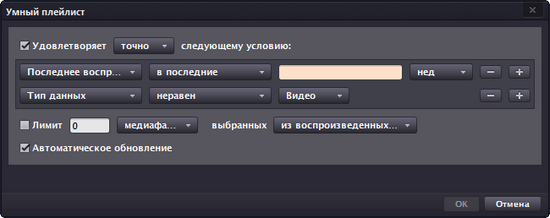 Songbird постоянно следит за предпочтениями пользователя и может подстраиваться под его музыкальный вкус. Одна из возможностей этого проигрывателя состоит в том, что он умеет компоновать «умные» списки воспроизведения. Ничего особенно «умного» в работе программы нет — просто она следует указанным в настройках критериям отбора файлов. А критериев этих так много, что можно и самому запутаться. Программа отделяет данные по рейтингу, времени добавления в медиатеку, также «видит» разницу между видео- и аудиофайлами. Скажем, в список воспроизведения могут быть включены последние треки, добавленные в течение месяца, которые в сумме составляют восемь часов музыки и при этом принадлежат одному исполнителю.