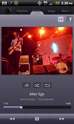 Как и любой приличный плеер для Android, Songbird имеет виджет для стартового экрана, при помощи которого можно просматривать информацию о проигрываемых треках тогда, когда устройство заблокировано.