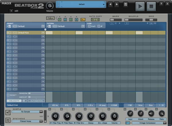 Music Maker MX также содержит встроенный синтезатор, с помощью которого можно составлять секвенции и редактировать их.