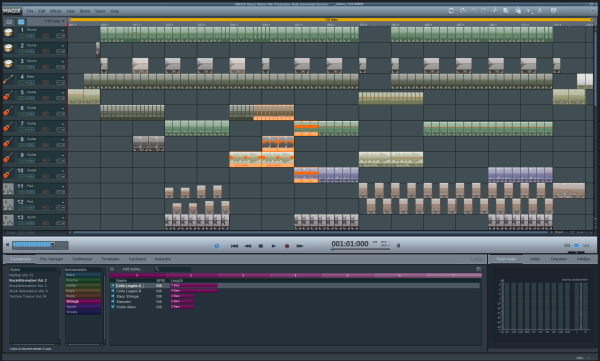 Чуть ниже расположена библиотека семплов — на ее основе можно начинать творить свои первые миксы. Количество треков в библиотеке зависит от установленной редакции программы. В самой младшей редакции около трех с половиной тысяч семплов, а самая продвинутая редакция Music Maker MX Production Suite включает более 10 тысяч наименований.