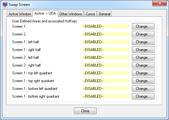 Swap Screen предназначена для быстрого перемещения окон с одного монитора на другой с использованием «горячих» клавиш или иконки в системном трее. Окна могут перемещаться на заранее определенную позицию, например в левый верхний угол. Также можно определять «горячие» клавиши для сворачивания всех окон, кроме активного, для переключения между рабочими столами, разворачивания активного окна. При помощи Swap Screen можно и управлять курсором, например закреплять его на активном экране или замедлять на границе между рабочими столами.