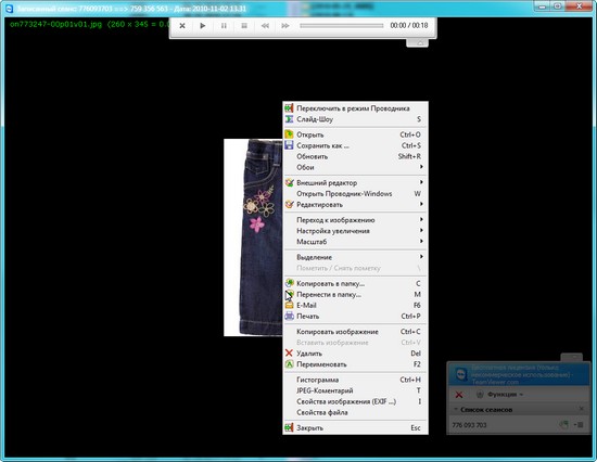 Программа может записывать все действия, которые происходят в окне подключения TeamViewer, в отдельный видео-файл *.TVS, который может быть впоследствии проигран движком программы. При его запуске открывается окно проигрывателя TeamViewer, в котором можно видео перематывать, ставить на паузу и т.д.