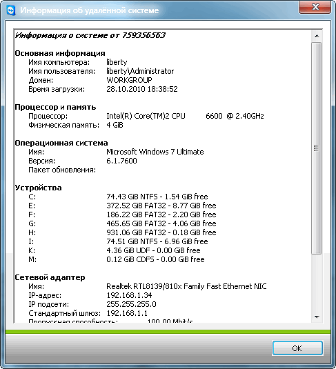 TeamViewer может предоставлять информацию о текущем подключении, а также подробные данные об удаленной системе.