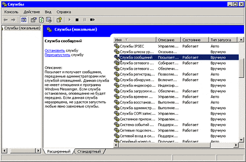 Подобное действие можно произвести вручную. Для этого в Панели управления щелкните на пункте Администрирование (Administration Tools), а затем - по пиктограмме Службы (Services).