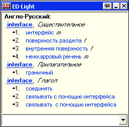 Урезанный интерфейс нисколько не утратил возможностей словаря - щелкнув по слову, можно увидеть и краткую грамматическую информацию. Этот режим очень удобен, когда вы не хотите загромождать экран большим интерфейсом словаря.